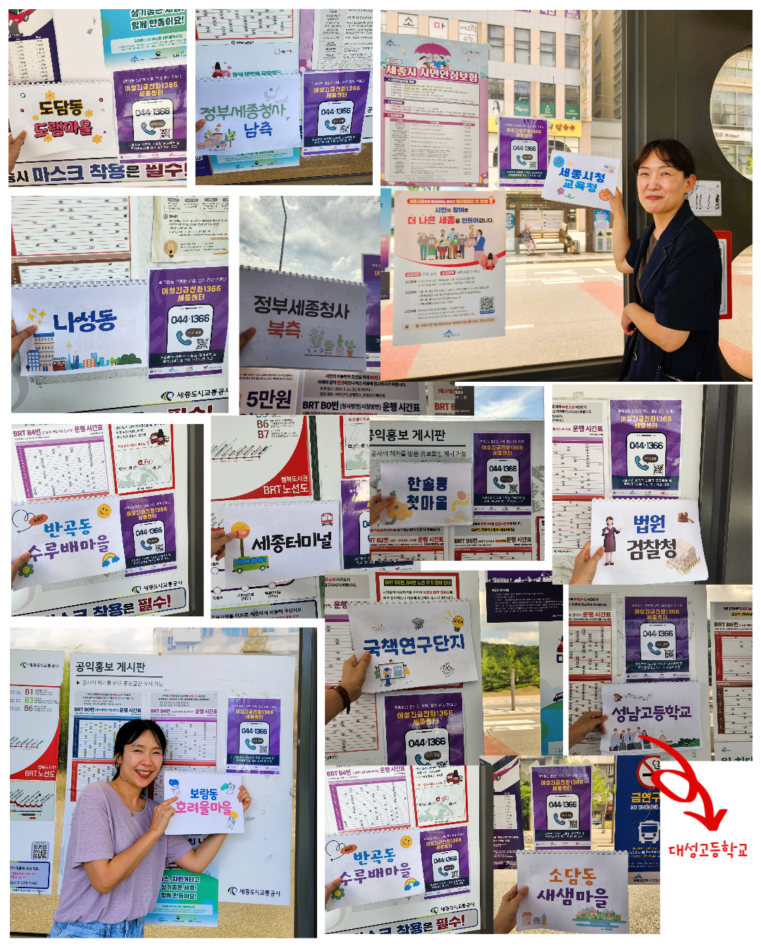 세종BRT 정류장 홍보(세종교통공사) ▶ 일시 : 2025. 6. 30.(월) 13:30~16:30분 ▶ 장소 : 세종BRT 정류장 14개소 ▶ 대상 : BRT 이용객 ▶ 내용 : 여성긴급전화1366 세종센터 기관 홍보