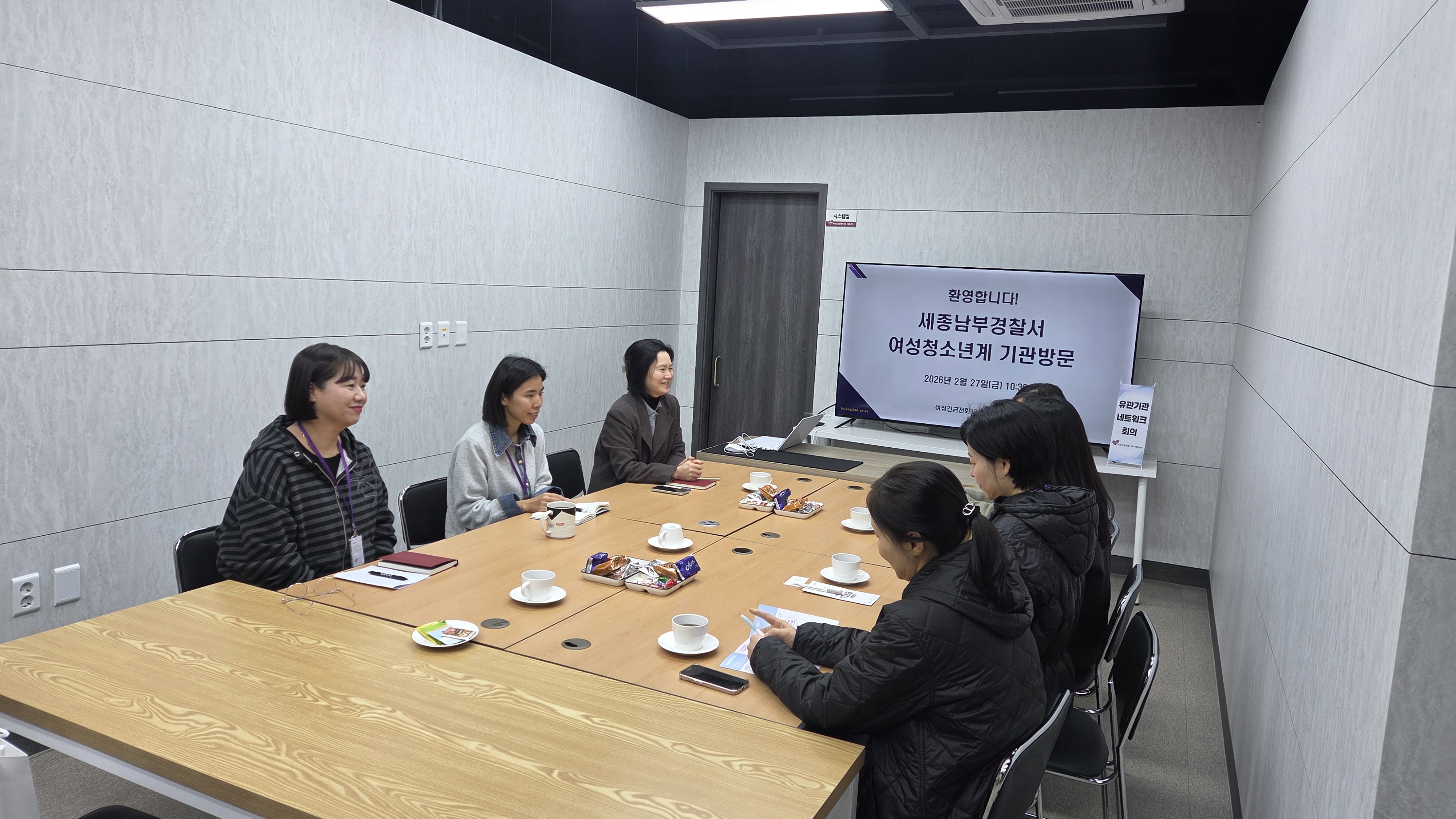 세종남부경찰서 여성청소년계 기관 방문 및 네트워크 회의 진행 ▶ 날짜 : 2026. 2. 27.(금) ▶ 장소 : 여성긴급전화1366 세종센터 ▶ 내용 : 피해자 지원 관련 업무 협조 및 연계 강화를 위한 네트워크 회의를 진행