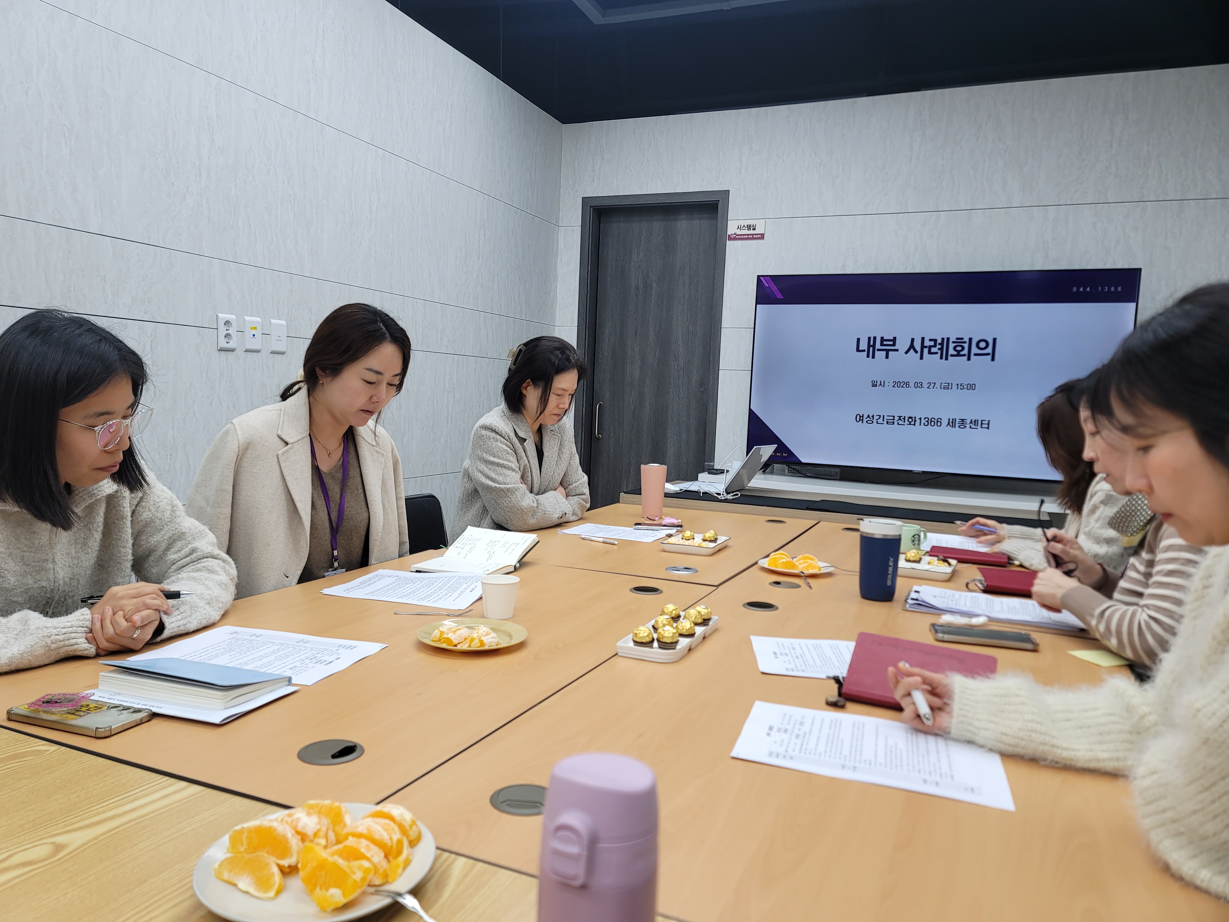 2026년 1차 내부사례회의 - 일 시 : 2026년 3월 27일(금) 15:00 - 장 소 : 센터 회의실 - 대 상 : 센터장 외 상담원 9명 - 내 용 : 내부 사례회의 실시