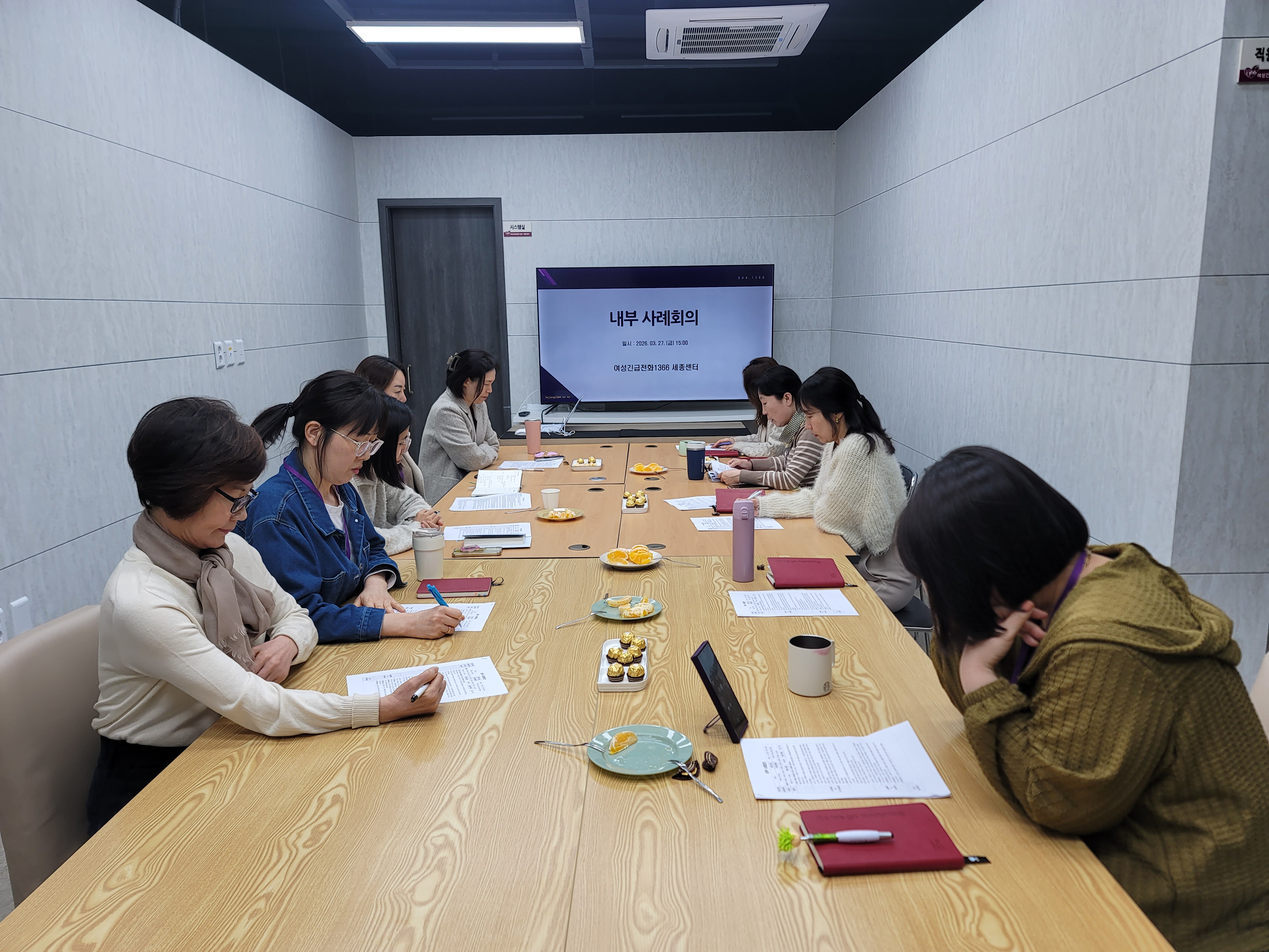 2026년 1차 내부사례회의 - 일 시 : 2026년 3월 27일(금) 15:00 - 장 소 : 센터 회의실 - 대 상 : 센터장 외 상담원 9명 - 내 용 : 내부 사례회의 실시